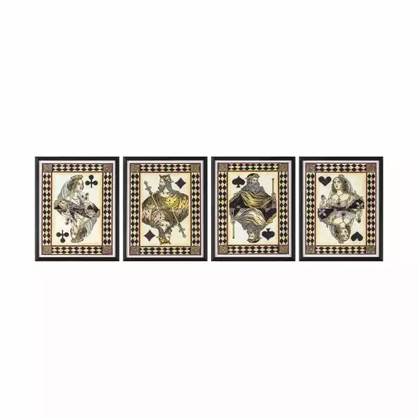 Show off an impressive display with this eye-catching set of 4 wall arts decorated with a unique House of Cards design. Perfect for a card gaming enthusiast or those who appreciate elegant art styles, these pieces are complete with a painted texture and simple black frames.