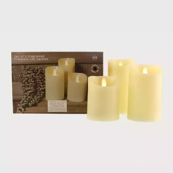 Perfect for the coming winter months, set the perfect ambience with this set of three LED candle lights with a gorgeous woody fragrance of black pepper with oriental woody notes of sandalwood. A way to keep safe whilst little ones around as it is flameless, simply switch on and off when you need to.