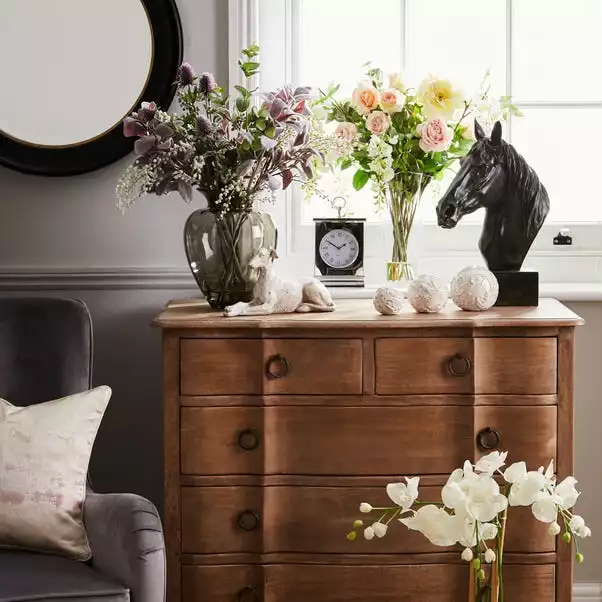 Crafted with glass and metal, this indulgent decorative tray is decorated with an opulent silver finish.