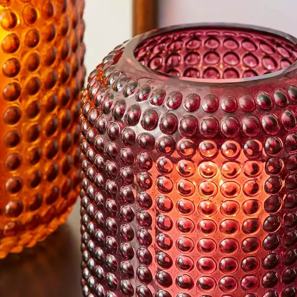 Crafted with a simple retro design with a beautiful amber colouring , this stunning large vase would make a striking addition to any home décor. Elegantly crafted with a stunning bobbled design, this vessel is perfect for use as a vase or a tealight holder and is easy to wipe clean.