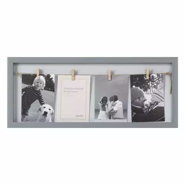 Complete with a unique design, this multi aperture photo frame has four pegs that hold four 6cm x 4cm photos.
