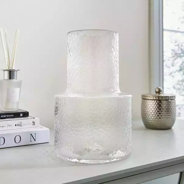 A bold, clear glass vase perfect for florals, greenery and other accent pieces. A modern design with a textured finish makes this vase an ideal finishing touch or centerpiece.