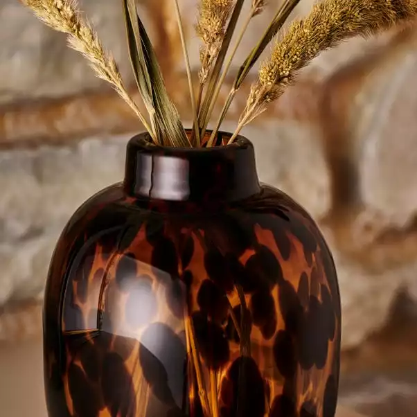 The Luxe Travel Tortoiseshell Glass Vase is perfect for adding a timeless look to your room, ideal for displaying flowers or pampas grass. Beautifully crafted from glass, the stylish design alongside the gorgeous brown colourway will add a modern look and feel to your home. This piece is also available in another size.