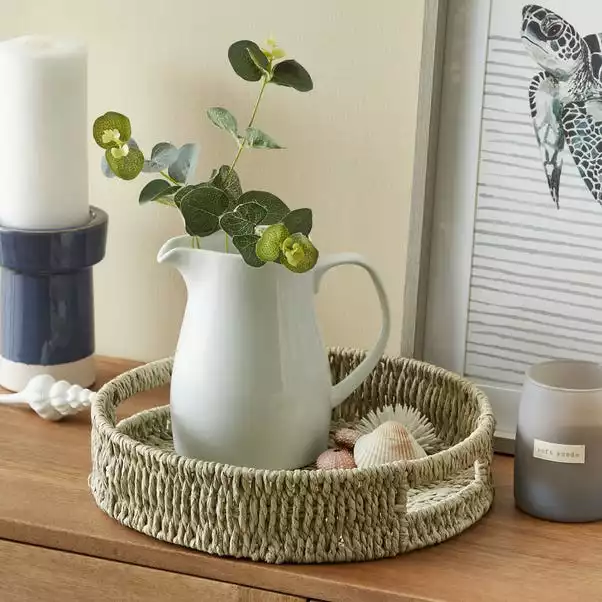Beautifully handcrafted, this natural paper rope tray is perfect for displaying flowers or ornaments in any room of your home. Made from natural paper rope material in a slight tint of green with a durable metal frame.