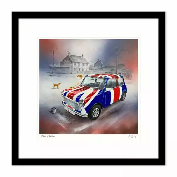 Add a nostalgic feel to your space with this artwork by Adam Barsby. Displayed in a compact square format, this piece is perfect for a car fanatic or just to add a little reminder of a classic mini in your home. To reinforce the pride of Britain, this artwork is mostly in muted tones and paired with the vibrant and strong red, white and blue for an eye-catching look.