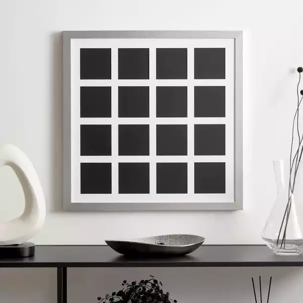 Display a variety of photos with ease in our contemporary square multi app photo frame. With a square design, this photo frame can display up to 16 different images with a square format. Available in 2 colours, this frame has been crafted from moulded PS and foil paper.