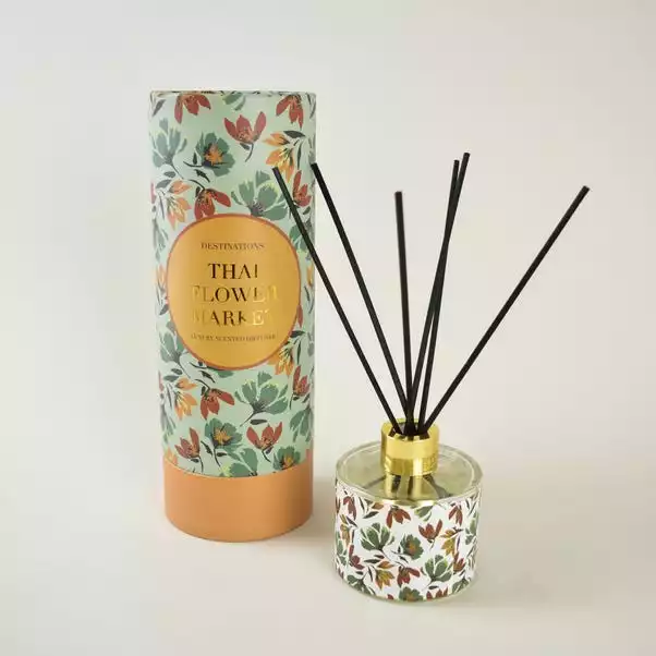 With a 150ml capacity, this reed diffuser with a Thai flower market scent can be placed in any room of the house. Lasting up to 45 days, this stylish reed diffuser is packed in a stunning gift box, making it the perfect gift for either yourself or a friend.