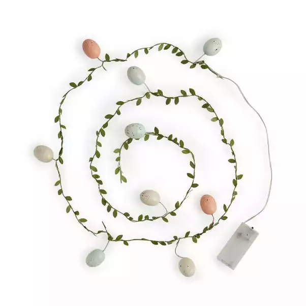These 20 warm white LED string lights feature a mini easter egg design with a leaf wrapped cable, perfect for decorating your home this festive season and are powered by 2 x AA batteries.