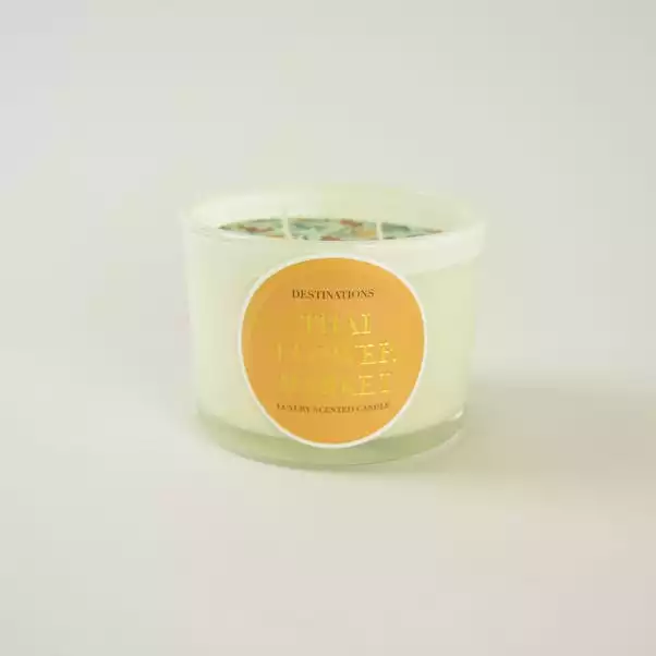 With a 30 hour burn time, this stunning wax filled pot is perfect for adding a Thai hint to your home. Presented in a frosted glass with a beautiful styled label to match the theme, this 380g candle has a beautiful Thai flower market scent.