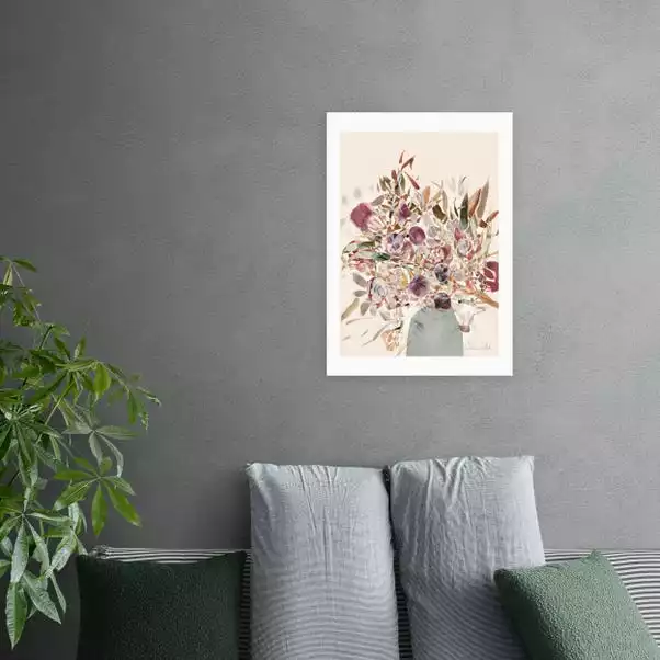 Allow this lively bouquet to blossom in your home with a delightfully soft colour palette and delicate painted style. Made using a Giclee printing process to prevent fading, this wonderful print features a pastel colours which will stay vibrant for years to come. Each design is available in four print sizes and a variety of frame options, including unframed, so you can display your artwork however you wish.