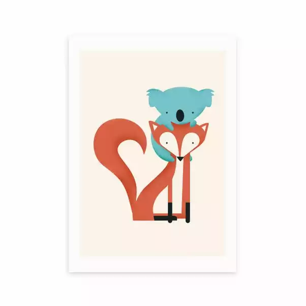 Perfect for an animal lover, the Fox and Koala on this Jay Fleck print will make an adorable addition to your home walls.