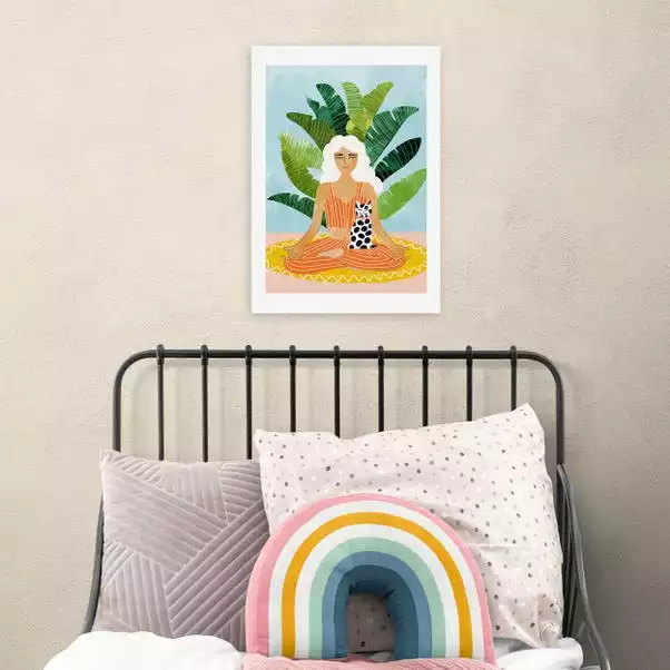 Reach ultimate zen with your feline friend and this bright illustrative print. Featuring a peaceful yoga pose, vibrant colours, patterns and a peaceful cat sitting alongside, this artwork would look great in a bedroom or self-care space. Fill your space with motivational words and encouragement to boost your mood with the simple and minimal styles in this typographic artwork. Made using a Giclee printing process to prevent fading, this wonderful print will stay vibrant for years to come. Each design is available in four print sizes and a variety of frame options, including unframed, so you can display your artwork however you wish.