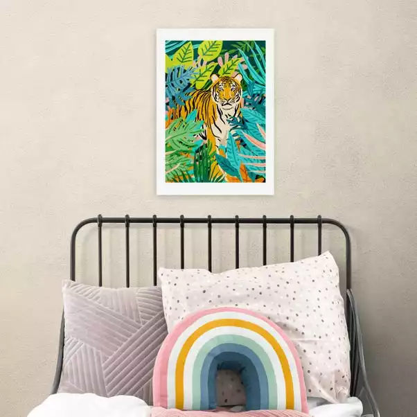 Add a bold pop of colour into your home by hanging this tiger inspired print. The botanical leaves will make your home feel all the more tropical.