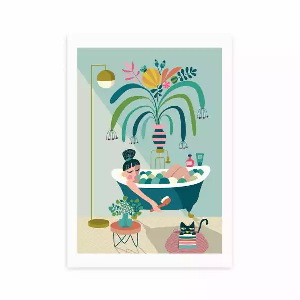 Sink into a soothing bubble bath and immerse yourself into a relaxing experience to match this stunning artwork. Featuring a playful, bright and fun illustration, this graphic print will fit in perfectly in a bathroom and offers a colourful burst of energy to your space. Made using a Giclee printing process to prevent fading, this wonderful print will stay vibrant for years to come. Each design is available in four print sizes and a variety of frame options, including unframed, so you can display your artwork however you wish.