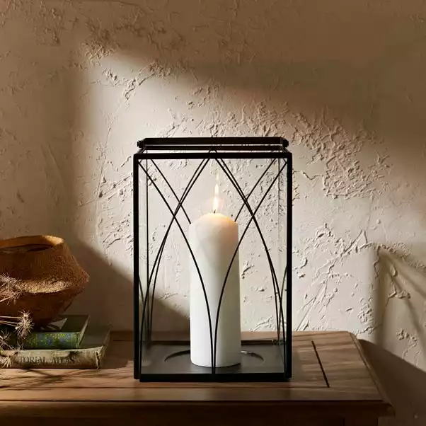 This Signature Metal Lantern is the perfect addition to your home, setting an ambience that relaxes you and your home. Beautifully made from durable and sturdy and finished with pristine glass. It features a black design that casts a stunning light when a candle it lit and is complete with a handle for easy carrying. Why not pair it with a pillar candle available to purchase separately?