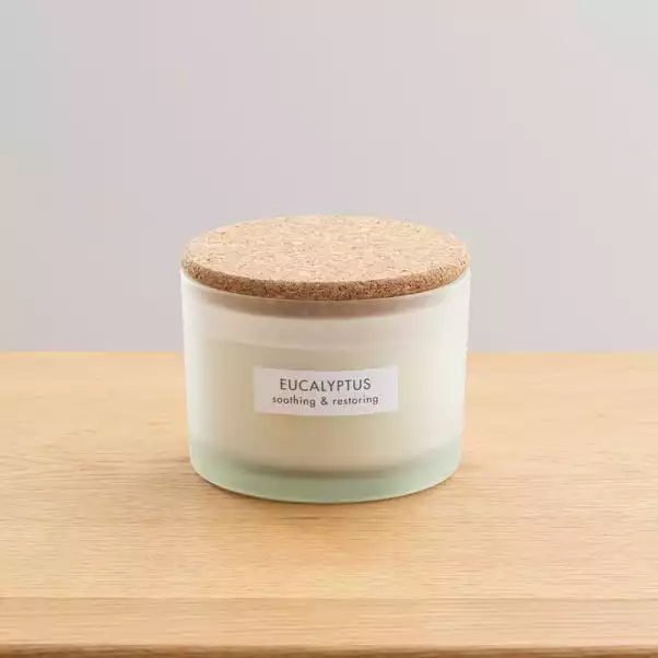 Beautifully presented in a sleek, clean glass jar with a natural cork lid. This wellness soy candle features a fresh and vibrant scent infused with freshly picked eucalyptus leaves, perfect to help soothe and restore. Ideal to create a fresh clean ambience in the home, this multiwick candle with natural oils lasts up to 35 hours and the modern glass jar can be reused once the wax has melted.